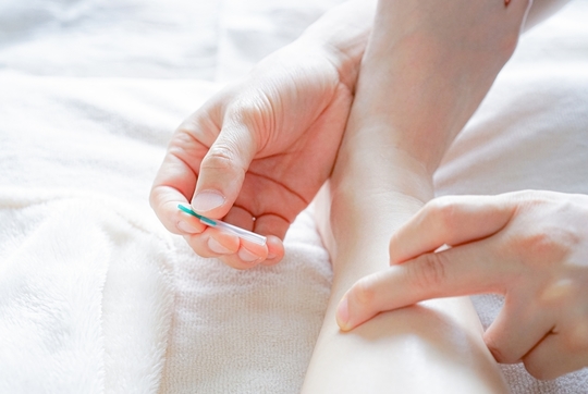 A. 髪の毛ほどの細い鍼を使うため、「チクッ」と感じる程度です。多くの方が「思ったより痛くなかった」と驚かれます。